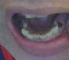 I denti non hanno bisogno di essere rimossi; si rompono e bruciano da soli, forse solo per dare sollievo nei giorni di dolore causato dall’infezione. Come potete vedere in questa mia foto. I miei denti sono così, ma non ho mai sofferto di dolore. Un’altra mia foto, a sinistra, mostra le gengive già preparate per la fuoriuscita dei denti.